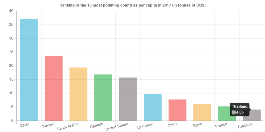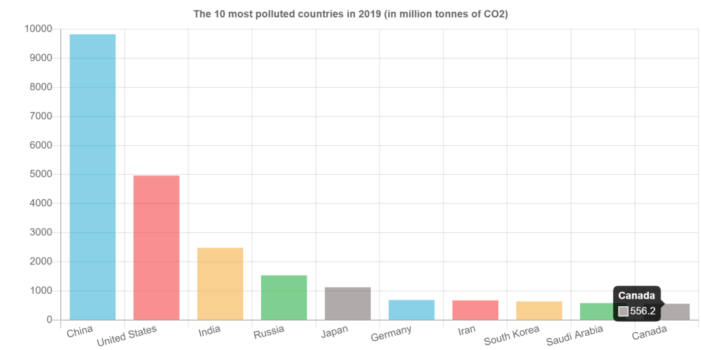 The ten most polluting countries are reponsible for half of the 34,1 million tonnes of CO2 produced in 2019. These, as well as those who are polluting at most per capita, could face international judiciary problems. More and more courts in developped countries are condamning their governments for not doing enough against the climate change crisis. Maybe some countries will face accusations before the international court of justice or even condamation from the United Nations‘ General Assembly. The klimax of this evolution would be sanctions or even an embargo. Obviously every country has to make concessions, or else no country will act. On the one hand, if most countries make concessions and the great polluters don’t, there will be tensions; I am pretty sure.